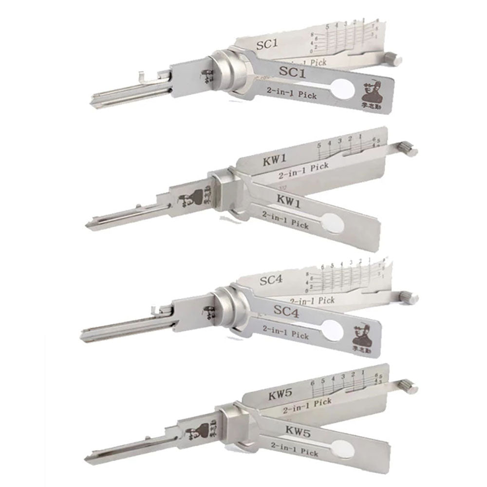 Lishi Residential Picks Bundle of 4 (SC1, SC4, KW1, KW5) & Magnetic Carrying Case